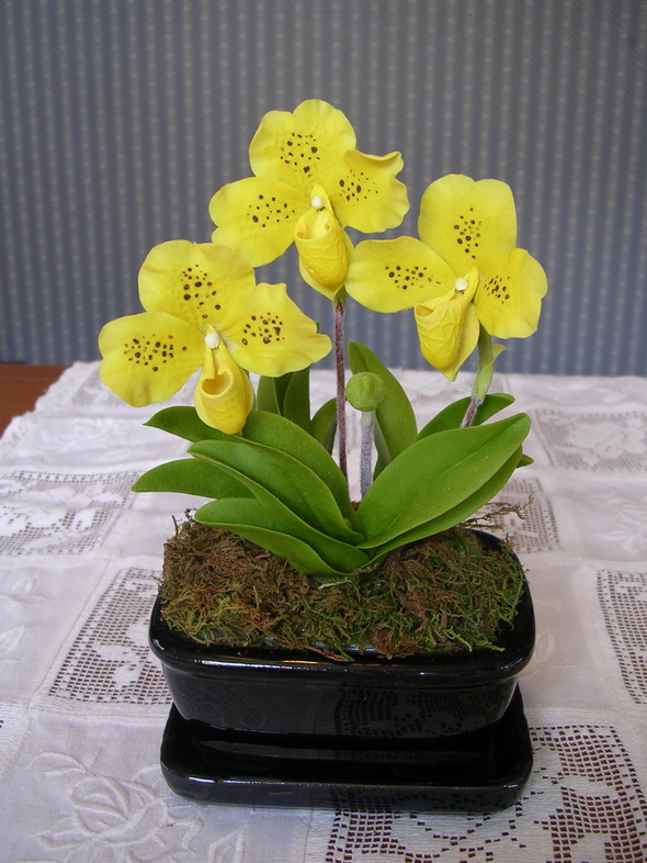 Since childhood, she had always been interested in nature and engaged by the beauty of orchids. Since much of Thailand has a hot, tropical climate, she was exposed to many different types of plants and flowers that could only be found there. One of her dad's hobbies was growing orchids. She grew up surrounded by orchids right in her own house. Therefore, she has examined their beauty and detail closely since she was a little girl. Today, she creates orchids and other flowers out of clay with the same enthusiasm she had then, passing on her love of orchids through the name of her only child, Cattleya.